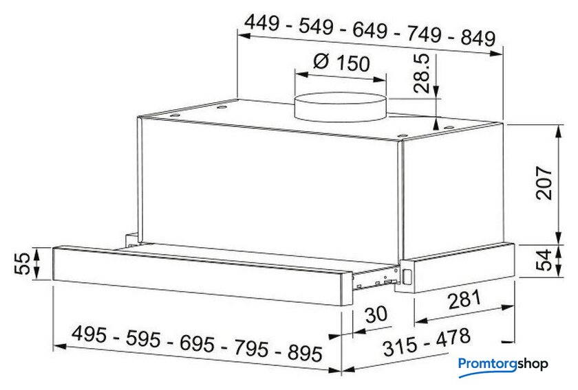 | Диаметр воздуховода | 150 мм |