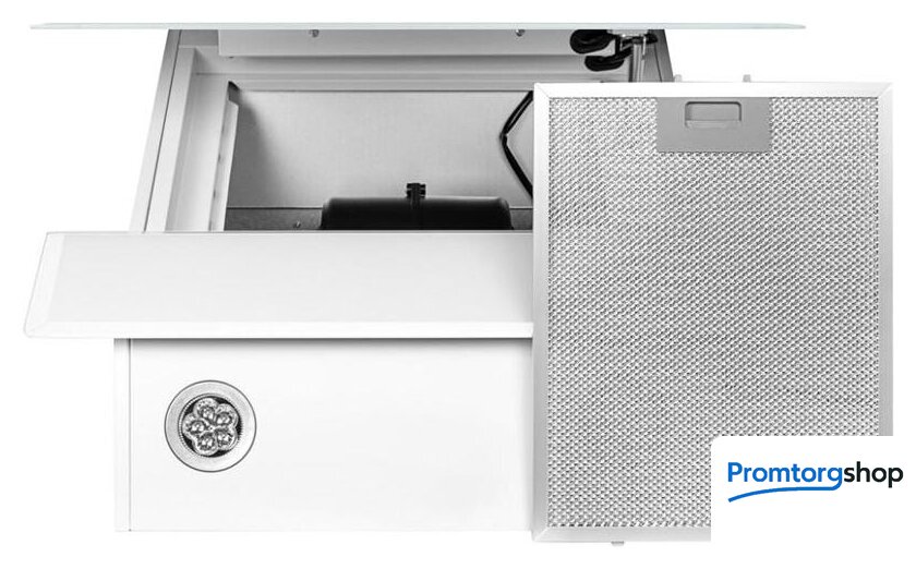 Дополнительные функциональные особенности | Перед началом работы вытяжки, фронтальная панель автоматически открывается. |