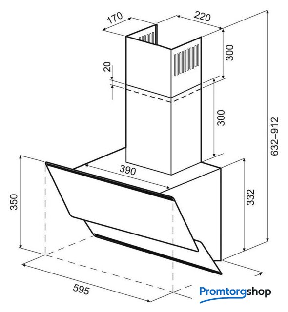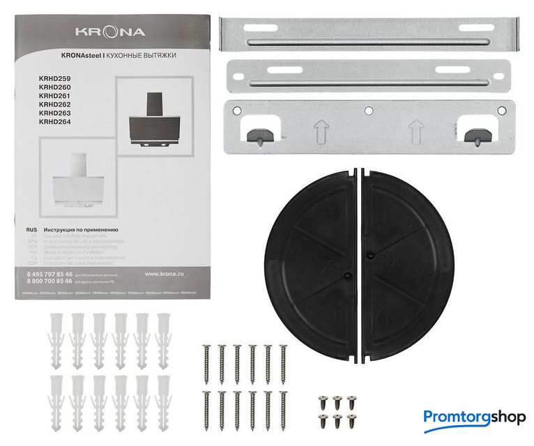 | Комплектация | декоративный короб воздуховода вытяжки – 2 шт., евровилка со шнуром 120 см, переходной фланец 150/120 мм, упаковка с комплектом крепежа вытяжки к стене, инструкция |
