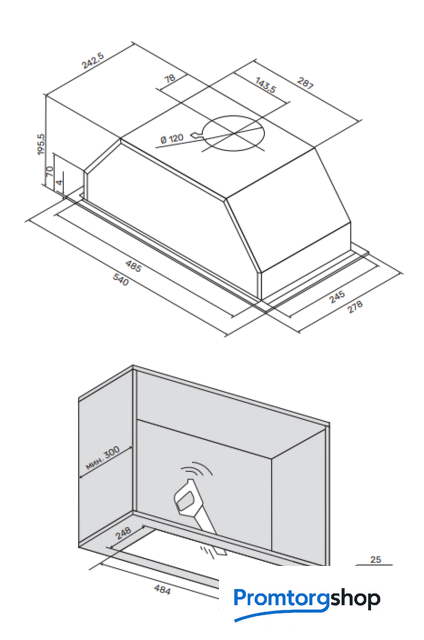 | Монтаж | для встраивания. Длина сетевого шнура 180 см. Размер ниши для встраивания В*Ш*Г 192*485*245 мм |