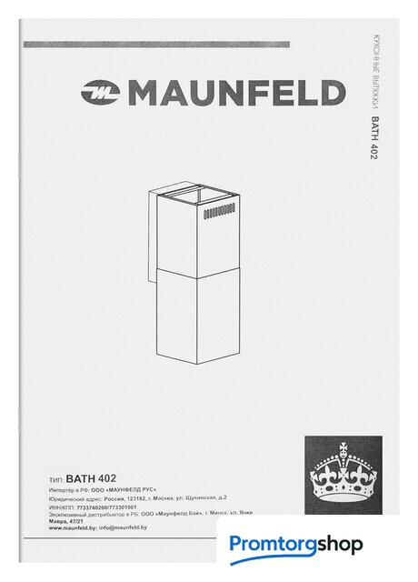 Изготовитель: Маунфелд ЛТД., Доксайд Роуд, Мидлсбро, TS6 6UZ, Великобритания / Maunfeld Ltd., Dockside Rd, Middlesbrough, TS6 6UZ, UK