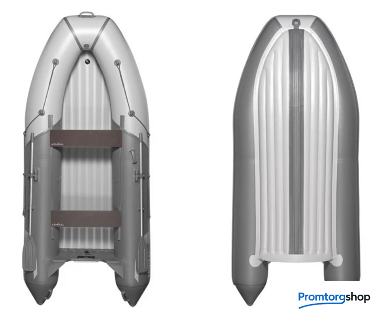| Тип лодки | моторно-гребная. Отличительная черта данной модели — увеличенный размер кокпита, повышенный диаметр баллонов — 45 см. Увеличенное пространство кокпита достигается не только за счёт увеличения ширины лодки, но и максимально сбалансированным смещением транца к концам конусов. Достигнутые характеристики были получены не в ущерб ходовым качествам — лодка не дельфинирует и не имеет «эффекта кобры». Отдельно хочется сказать об использованной ткани. Компании Адмирал была выделена особая ткань с усиленным плетением нити, что позволяет при стандартной плотности ткани, а именно 850 г/м2 баллон и 1100 г/м2 днище, получать лучшие характеристики: ткань менее ломкая, прочная, морозоустойчивая. |