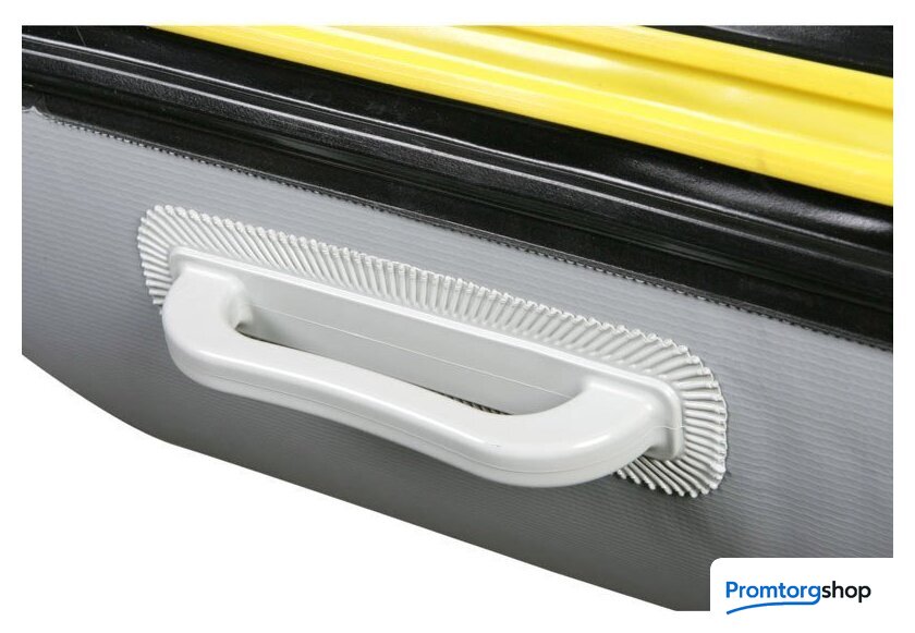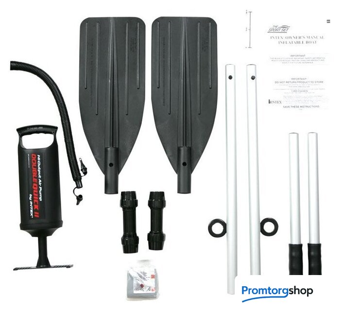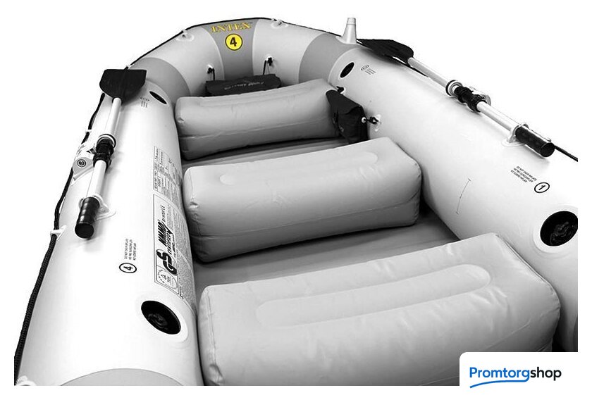 | Комплектация | - приваренные вращающиеся уключины для весел и держатели весел;- набор деталей на задней части лодки для крепления мотора;- 3 надувные седушки;- 2 держателя для удочек;- 1 фиксируемая сумка для принадлежностей:- 1 сумка для аккумулятора;- ремкомплект; - насос; - пара вёсел; |