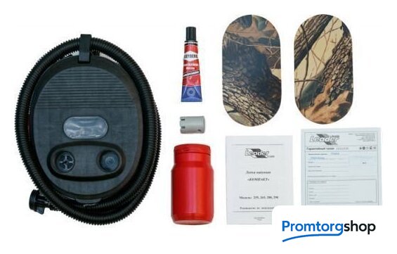 | Комплектация | • Разъемные алюминиевые весла 140 см с большой пластиковой лопаткой. • Фанерная банка на сдвижном крепеже 2 шт. • Ножная помпа-насос 5 л. • Рем-набор. • Транспортировочная упаковка (рюкзак) с лямками для переноски. |