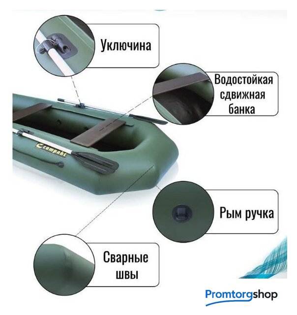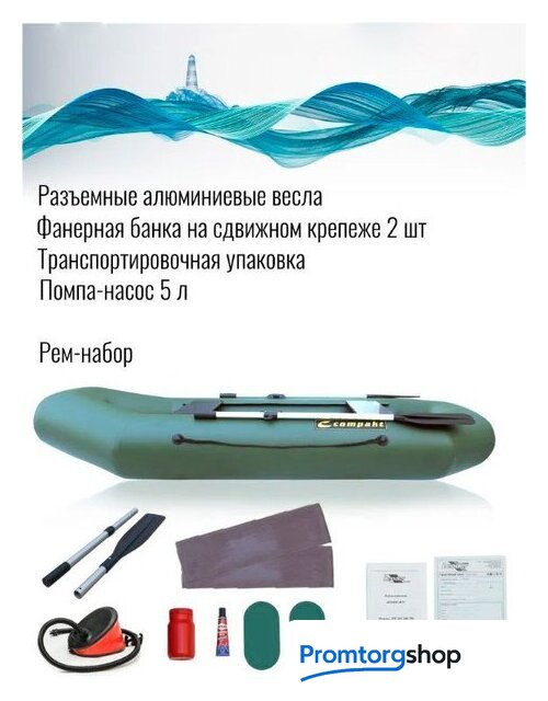 | Комплектация | 2 фанерных сиденья, 2 дюралюминиевых весла, насос, ремкомплект, сумка упаковочная, руководство по эксплуатации, лямки заплечные |