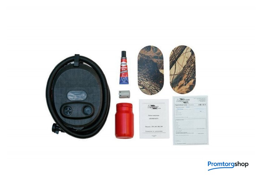 | Комплектация | весло (алюминиевые, 2 шт.), насос (помпа-насос 5 л), транец (встроенный), ремкомплект, сумка упаковочная, руководство по эксплуатации (паспорт), банка (сиденье) (2 шт.) |