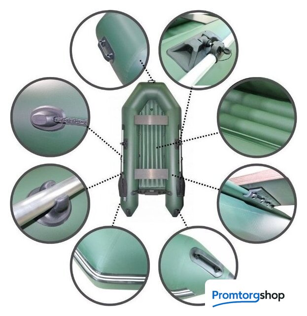 | Комплектация | весло (2 шт.), насос (ножной), ремкомплект, сумка упаковочная, руководство по эксплуатации (паспорт), банка (сиденье) (2 шт.), клапан для сброса давления (+ предохранительный для избыточного), леерный трос, ручки для переноски, уключины для весел, привальный брус |