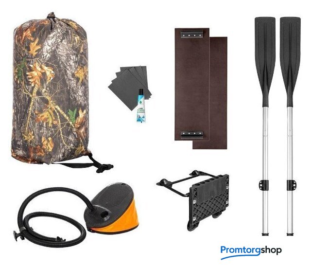 | Комплектация | транец, ремкомплект, сумка упаковочная, руководство по эксплуатации (паспорт), весло (2 шт.), насос (5 л), банка (сиденье) (2 шт.) |