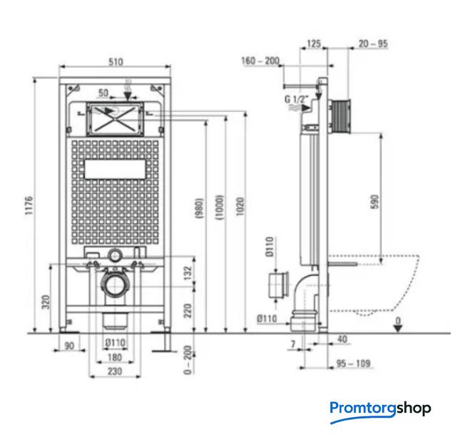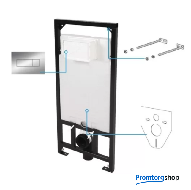 Конструкция | рамная. Комплектация: стальной модуль. смывной бачок, двухрежимная кнопка, фоновый отвод, крепления для унитаза, звукоизоляционная прокладка, регулируемые ножки. |