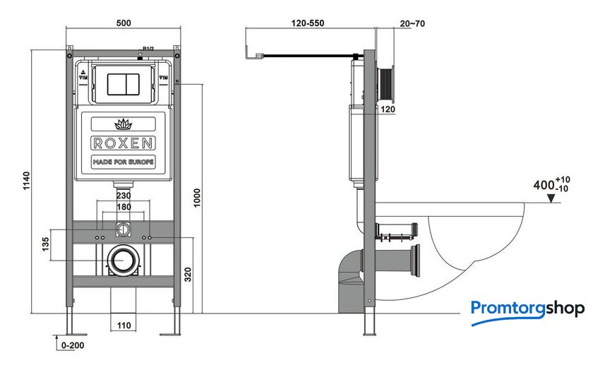 | Отверстия под унитаз | 180 мм, 230 мм |