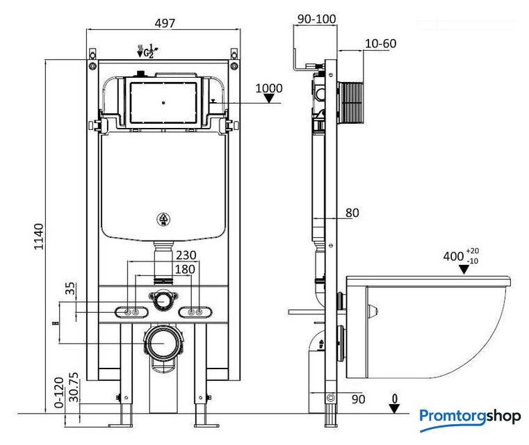 | Отверстия под унитаз | 180 мм, 230 мм |