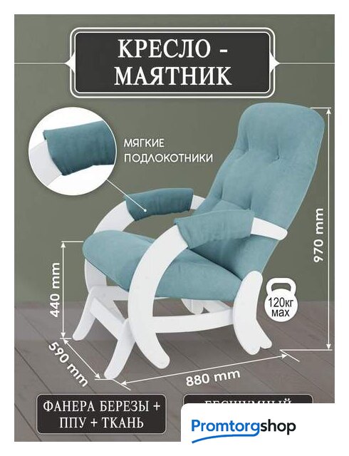 Тип | кресло-маятник. Максимальная нагрузка 100 кг. Форма поставки в разобранном виде. Любая комнатная зона с креслом-глайдером Модель 68 превратится в комфортное место для отдыха, чтения, просмотра телевизора. Благодаря маятниковому механизму эта модель раскачивается плавно и абсолютно бесшумно, не повреждает напольное покрытие. Для моделей представлено множество цветовых решений на любой вкус. |