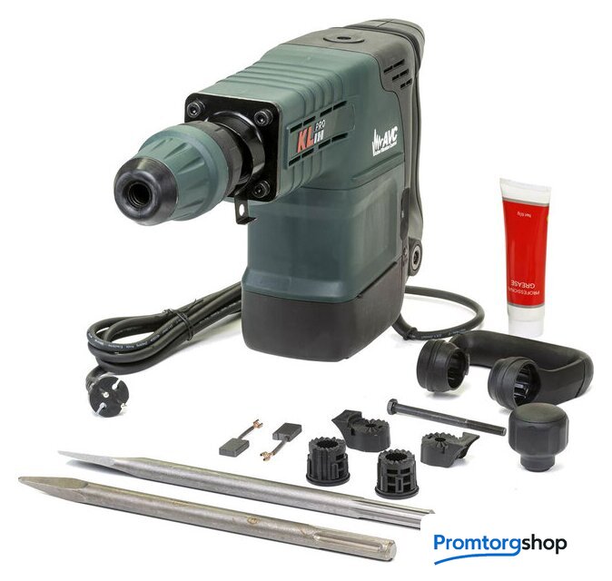 Комплектация | долото, зубило, угольные щетки, дополнительная рукоятка, смазка, кейс, глубиномер |