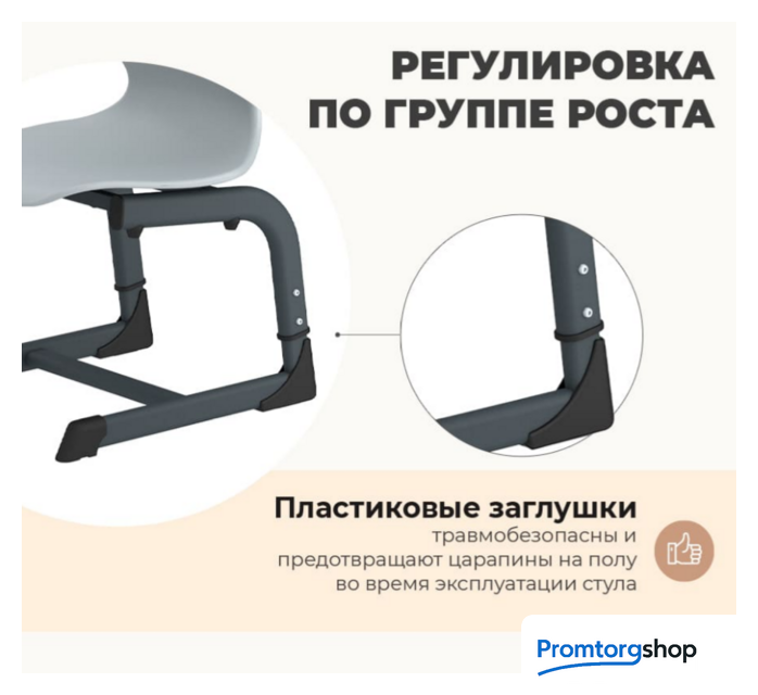 | Высота стула | 64-68-72 см (с фиксацией на ростовые группы). |