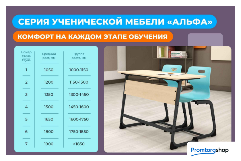| Тип | детский стол. ПРОЧНОСТЬ И ДОЛГОВЕЧНОСТЬ Сиденье выполнено из утолщенного пластика с армирующими добавками, что значительно увеличивает его жесткость и надежность. Надежный металлический каркас стула выполнен из плоскоовальной трубы и покрыт порошковой краской, устойчивой к механическому воздействию. Каждый стул проходит строгие испытания на устойчивость, выдерживая более 50 000 циклов нагружения "сел-встал", что гарантирует его долговечность даже при интенсивном использовании. Максимальная нагрузка на стул 130 кг АНАТОМИЧЕСКАЯ ФОРМА СИДЕНЬЯ способствует правильной осанке и снижает усталость во время занятий. На спинке предусмотрено отверстие для руки, что делает перемещение стула простым и удобным. РЕГУЛИРОВКА ПО ГРУППЕ РОСТА Функция регулировки по высоте обеспечивает комфортное положение и поможет в выработке правильной осанки. Регулируются по высоте на 3-5 группы роста. В каждую упаковку стула вложены наклейки с номерами ростовых групп — вы можете использовать их для удобной маркировки. ДЕМПФЕРЫ на каркасе предотвращают повреждение поверхности столешницы при установке стула на стол. ПЛАСТИКОВЫЕ ЗАГЛУШКИ нижних опор каркаса предотвращают царапины на полу во время эксплуатации стула и травмобезопасны. |
