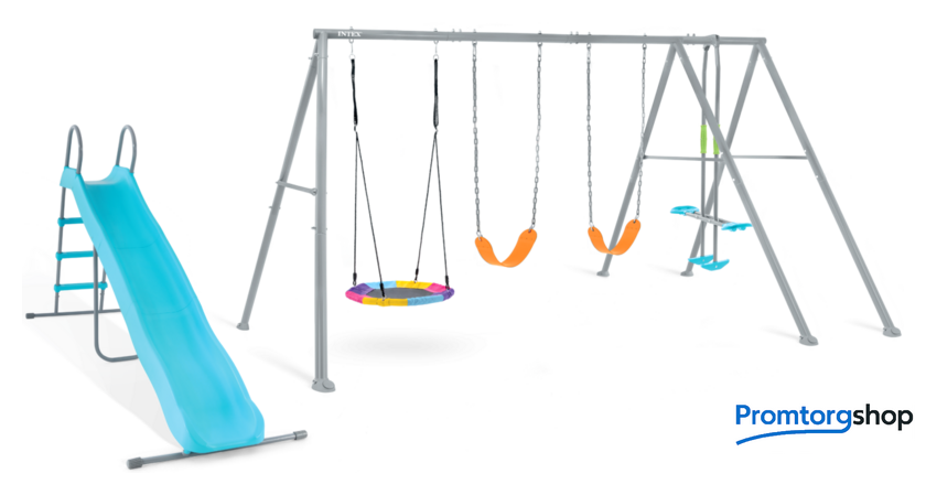 Intex 44151 (зеленый/голубой) Комплекс 4-в-1 цветные+горка