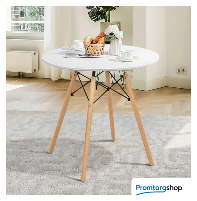 | Тип | обеденный стол для дома. Eames T-01 – компактный стол в минималистичном стиле. Он великолепно впишется в интерьер кухни, гостиной или обеденной зоны. Этот стол станет прекрасным дополнением для стульев из аналогичной серии. Круглая столешница сделана из практичного МДФ, покрыта белым матовым лаком. Диаметр — 80 см. Ножки выполнены из массива бука. Металлические крепления обеспечивают повышенную стабильность конструкции даже под большими нагрузками. На ножках имеются протекторы, защищающие напольное покрытие от повреждений. |