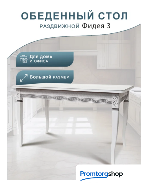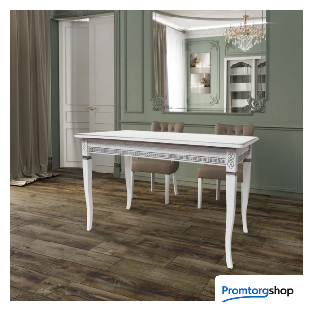 | Тип | Обеденный стол Мебелик Фидея 3 белый/серебро, 120/160x70 5483 классической формы, сочетание натуральных материалов, и стильной отделки создаёт благородный и праздничный вид. Ножки изготовлены из массива бука – пожалуй, самой твердой породы дерева из тех, что принято использовать при производстве мебели в нашей стране. Столешницы выполнены из мдф покрытого шпоном натурального ясеня. Ясень – это дерево, отличающееся кроме прочности, одним из самых красивых рисунков текстуры. |
