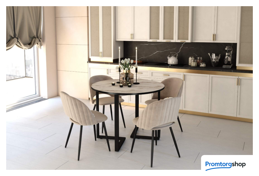 | Тип | Для совместных трапез - готовый обеденный комплект с удобными стульями. Можно выбрать другие цвета стульев и стола. В комплект входит один стол: - SHT-T41 100-140 В комплект входит четыре стула: - каркас S34-1 - сидение ST95-1 ЭРГОНОМИЧНАЯ КОНСТРУКЦИЯ Изделие оснащено простым раздвижным механизмом бесцаргового типа. В собранном виде по центру столешницы имеется стыковочный шов. Выдвижную часть необходимо хранить отдельно. Для того, чтобы разложить стол, нужно: 1.Раздвинуть в стороны обе половинки столешницы. 2. Затем достать центральную часть и вставить ее в пазы. 3. После чего сдвинуть назад боковые половинки до характерного щелчка. Это значит, что все части конструкции зафиксировались в правильном и неподвижном положении. При таком способе раскладки длина сола меняется с круглой на овальную и увеличивается от 1000 мм до 1400 мм. ПРОЧНОСТЬ И ДОЛГОВЕЧНОСТЬ Прочная столешница из МДФ 22 мм со слоем декоративного пластика HPL 1,2 мм. Надежное металлическое основание окрашено порошковой краской, устойчивой к механическому воздействию. Каркас выполнен из трубы 50х25 мм толщиной 1,2 мм. В сложенном состоянии стол умещает 4 человека, а в разложенном до 6 человек. Выдерживает продолжительные нагрузки - максимальная статическая нагрузка до 50 кг. Опоры выполнены из металлической трубы диаметром 25 мм. Окрашены порошковой краской, устойчивой к механическому воздействию. Максимальная статическая нагрузка на каркас – 260 кг. ЛЕГКИЙ И ПРОСТОЙ УХОД Раздвижной стол для кухни неприхотлив в уходе. Возникшие загрязнения протрите влажной, а после чистой сухой тканью, при необходимости можно использовать слабый мыльный раствор. Для хранения и содержания стола не требуются особые условия. СТИЛЬНЫЙ ДИЗАЙН заключен в красиво очерченном вырезе внизу снинки сидения. Такой элемент придает готовому стулу воздушности и удобство в использовании. Необычный дизайн ножек не только добавляет в интерьер ломаных линий, но и позволяет сэкономить пространство для ног. Выпуклый рисунок натурального камня на столешнице отлично дополнит классический интерьер обеденной зоны. ПРЕКРАСНАЯ ЭРГОНОМИКА сидения обеспечивает удобную посадку и комфортное времяпровождение. Стул с опорами SHT-S129 обеспечит удобную посадку и комфортное времяпровождение. МЯГКОЕ СИДЕНИЕ. Обивка выполнена из микровелюра, в качестве мягкого наполнителя используется поролон. Такое сидение обеспечит удобную посадку, необходимую для полного расслабления. |