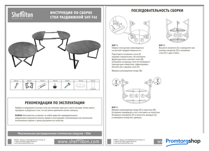 | Форма стола | круглая (в собранном виде), овальная (в разложенном виде). Максимальная нагрузка 50 кг (на стол); 260 кг (на стулья). Форма поставки в разобранном виде |
