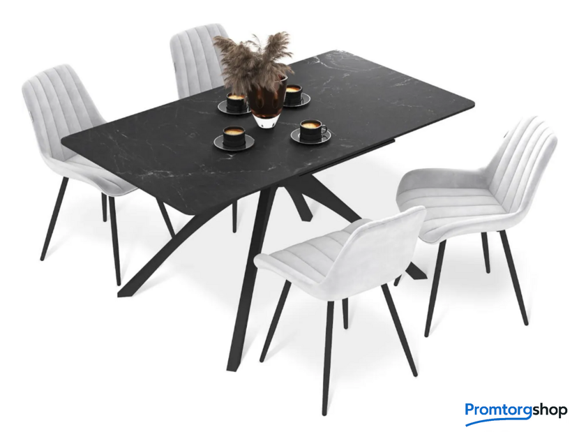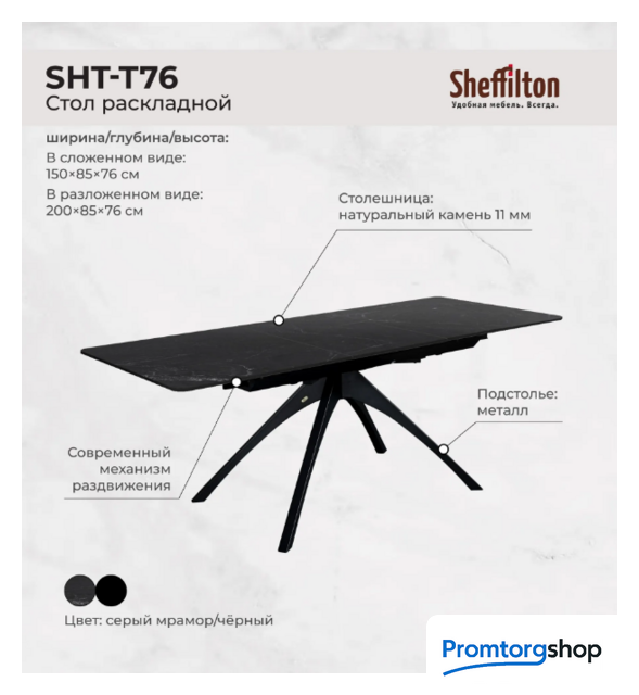 | Тип | обеденная группа для дома, для кафе/бара. Раскладной обеденный стол SHT-T76 из натурального камня на металлическом подстолье - это идеальное сочетание красоты и практичности. Его рисунок и текстура придает обеденной группе дорогой и нарядный вид. Стулья, в свою очередь, прекрасно дополняют обеденную группу и делают её визуально воздушной за счёт своего практичного и современного дизайна. Столешница из натурального камня отличается высокой износостойкостью, водоотталкивающими свойствами и устойчивостью к температурным воздействиям. Не боится высоких температур, можно ставить горячие блюда. Такая столешница не впитывает влагу и легко очищается от загрязнений. Толщина столешницы 11 мм, такой тонкий край делает стол визуально невесомым. Надежное металлическое подстолье окрашено порошковой краской, которая обеспечивает прочность и стойкость к повреждениям. Предусмотрены регулируемые опоры по высоте, что позволяет использовать основание даже на неровной поверхности. Обивка сиденья стула выполнена из микровелюра, в качестве мягкого наполнителя используется поролон. Надежный металлический каркас окрашен порошковой краской, устойчивой к механическому воздействию. Максимальная статическая нагрузка на каркас – 260 кг. Современный механизм раздвижения позволяет легко раскладывать и складывать стол. Размер стола в сложенном виде - 150×85×76 см, размер в разложенном виде - 200×85×76 см. За столом длиной 150 см вы с удобством разместите до 6 персон, а в разложенном виде можно расположить до 8 гостей. Страна производства: Россия |