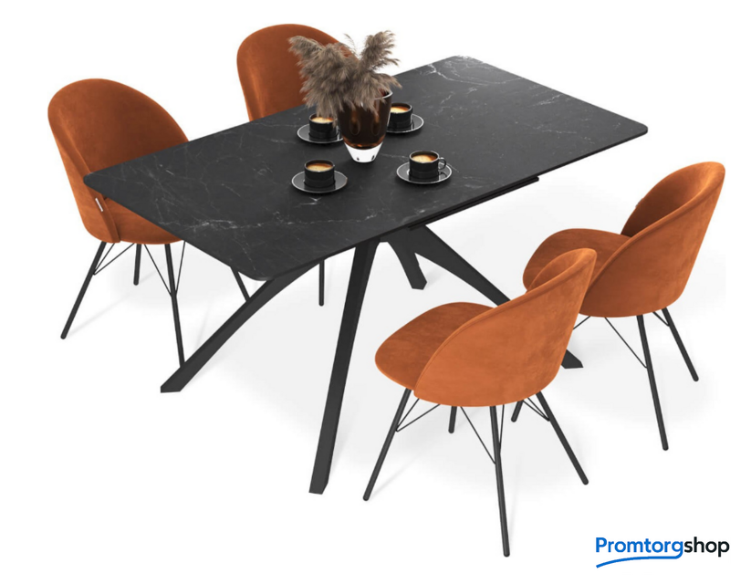 Тип | обеденная группа для дома, для кафе/бара. Раскладной обеденный стол SHT-T76 из натурального камня на металлическом подстолье - это идеальное сочетание красоты и практичности. Его рисунок и текстура придает обеденной группе дорогой и нарядный вид. Стулья, в свою очередь, прекрасно дополняют обеденную группу и делают её визуально воздушной за счёт своего практичного и современного дизайна. Столешница из натурального камня отличается высокой износостойкостью, водоотталкивающими свойствами и устойчивостью к температурным воздействиям. Не боится высоких температур, можно ставить горячие блюда. Такая столешница не впитывает влагу и легко очищается от загрязнений. Толщина столешницы 11 мм, такой тонкий край делает стол визуально невесомым. Надежное металлическое подстолье окрашено порошковой краской, которая обеспечивает прочность и стойкость к повреждениям. Предусмотрены регулируемые опоры по высоте, что позволяет использовать основание даже на неровной поверхности. Обивка сиденья стула выполнена из микровелюра, в качестве мягкого наполнителя используется поролон. Надежный металлический каркас окрашен порошковой краской, устойчивой к механическому воздействию. Максимальная статическая нагрузка на каркас – 260 кг. Современный механизм раздвижения позволяет легко раскладывать и складывать стол. Размер стола в сложенном виде - 150×85×76 см, размер в разложенном виде - 200×85×76 см. За столом длиной 150 см вы с удобством разместите до 6 персон, а в разложенном виде можно расположить до 8 гостей. Легкий уход. Возникшие загрязнения протрите влажной тканью и вытрите чистой сухой тканью, при необходимости можно использовать слабый мыльный раствор. Для хранения и содержания столешницы не требуются особые условия. Страна производства: Россия |