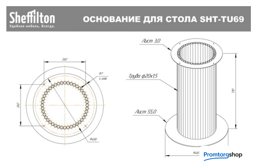 | Форма стола | круглая. Максимальная нагрузка 200 кг. Форма поставки в разобранном виде |