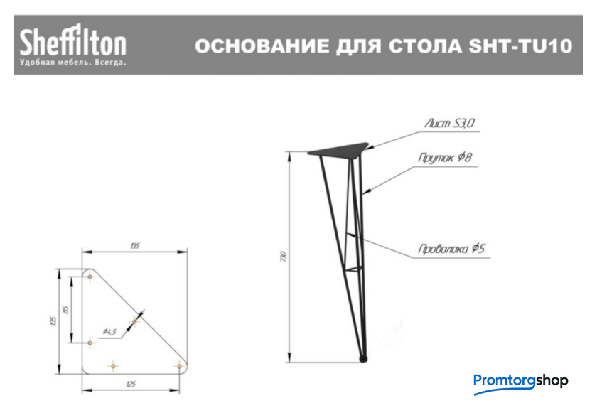 | Тип | обеденный стол для дома, для кафе/бара. Стол со столешницей из МДФ будет гармонично и со вкусом смотреться в доме, офисе, дизайн-студии, кафе, баре, ресторане. Основание из металла, диаметром 8 и 5 мм. Толщина верхних кронштейнов для крепления столешницы 3 мм. Предусмотрен подпятник с резиновой проставкой, диаметром 22 мм., подпятник эффективно защищает половое покрытие от царапин. Опора устанавливается под наклоном. Легкий и простой уход за изделием. Не рекомендуется: ставить горячее без специальных подставок резать на поверхности без использования доски использовать на улице под открытым небом, что подвергается прямому воздействию солнечных лучей и осадков. |