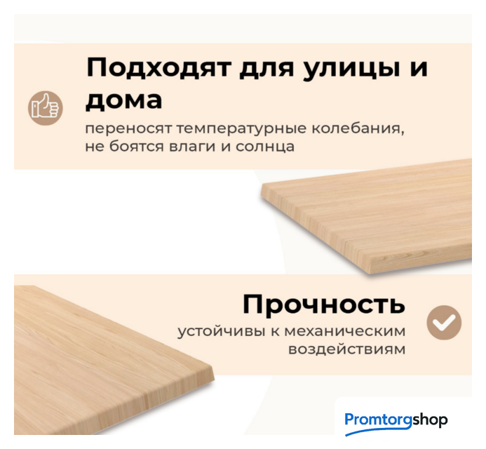 | Тип | обеденный стол для дома, для кафе/бара. Лаконичный дизайн cтола позволяет добавить его в любой дизайн кафе, бара, ресторана, офиса, общественных учреждений, залов ожидания или домашних интерьеров. Вы произведете впечатление на любого, кто посетит Ваше заведение или дом. Дизайн и эстетика Стол со столешницей из верзалита — это не просто элемент мебели, а отличное решение для тех, кто ценит гармонию в интерьере. Он будет гармонично и со вкусом смотреться не только в помещении, но и на улице. Благодаря своим уникальным свойствам столешница станет идеальным решением для ресторанных помещений, кафе и санаториев, где есть открытые летние площадки. Перекрещивающиеся ножки повторяют натуральные изгибы деревьев. Современное основание из армированного пластика — один из инновационных и стильных предметов мебельной обстановки. Такое подстолье отличается своей прочностью, легкостью и долговечностью и считается самой востребованной мебелью среди современных потребителей. Современный стиль основания позволяет добавить готовый стол в любой дизайн дома, сада, кафе, бара, ресторана, офиса, общественных учреждений, залов ожидания и домашних интерьеров. Вы произведете впечатление на любого, кто посетит Ваше заведение или дом. Прочность и долговечность В столешнице присутствует высокая доля щепы из твердых пород древесины, что делает её чрезвычайно прочной и устойчивой к механическим воздействиям. Практичная столешница из верзалита отличается износостойкостью, долговечностью, водонепроницаемостью, устойчивостью к внешним воздействиям. Не боится высоких температур, можно ставить горячие блюда. Такая столешница не впитывает влагу и легко очищается от загрязнений. Подстолье выполнено из полипропилена с армирующими добавками, благодаря которым повышается жесткость и надежность. Изделие устойчиво к ударным воздействиям, негативным воздействиям окружающей среды и появлению царапин. Выдерживает продолжительные нагрузки - максимальная статическая нагрузка до 100 кг. Благодаря повышенным атмосферостойким свойствам, подстолье хорошо переносит воздействие различных погодных условий. Не деформируется и имеет более устойчивое сопротивление к изменению цвета и прочностных характеристик на открытом воздухе при температуре от -15 С до +40 С; При этом, важно отметить, что насыщенность цвета во многом будет определяться интенсивностью солнечного света и продолжительностью нахождения под ним. Простой уход за изделием Возникшие загрязнения протрите влажной тканью и вытрите чистой сухой тканью, при необходимости можно использовать слабый мыльный раствор. Для хранения и содержания столешницы не требуются особые условия. Регулируемые опоры На шарнирах позволяют комфортно использовать основание на неровной поверхности. На опорах имеются подпятники из эластичной резины, что придает основанию антискользящие свойства. При желании основание можно использовать без регулируемых опор. Практичность и безопасность Столешница имеет плавный закругленный переход от лицевой поверхности к боковым кромкам, что добавляет особую эстетику и обеспечивает безопасное использование. Страна производства: Россия |