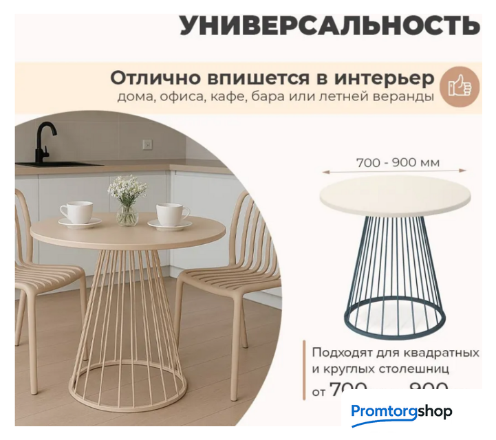 | Тип | для кафе/бара, для дома. Лаконичный дизайн стола позволяет добавить его в любой дизайн кафе, бара, ресторана, офиса, общественных учреждений, залов ожидания или домашних интерьеров. Дизайн и эстетика. Столешница из ЛДСП смотрится аккуратно и привлекательно. Цвет столешницы имитирует модную текстуру натурального мрамора. Металлическое круглое подстолье отличается современным и оригинальным дизайном. Элегантная конусообразная форма и чёткие линии придают ему визуальную лёгкость, благодаря чему подстолье гармонично дополнит любой интерьер, от строгого минимализма до стильного лофта. Прочность и долговечность. Столешница выполнена из ЛДСП и покрыта специальной плёнкой, которая формирует защитный слой от внешнего воздействия. Безопасная кромка надёжно защищает столешницу от сколов. Надёжное металлическое подстолье окрашено порошковой краской, устойчивой к механическим повреждениям и износу. Основание выполнено из трубы 20×20 мм и прутков 10 мм. Для установки столешницы имеются металлические пластины, которые обеспечивают надёжность крепления. Регулируемые подпятники. На основании предусмотрены подпятники, регулируемые по высоте. Они позволяют использовать стол даже на неровной поверхности. Запрещено: ставить горячее без специальных подставок; резать на поверхности без использования доски; использовать на улице под открытым небом, что подвергается прямому воздействию солнечных лучей и осадков; оставлять под прямыми солнечными лучами (открытое окно, балкон, веранда и т.д.). Страна производства: Россия |