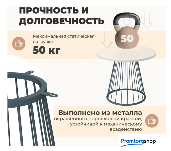 | Форма стола | круглая. Максимальная нагрузка 50 кг. Форма поставки в разобранном виде |
