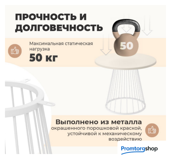| Форма стола | круглая. Максимальная нагрузка 50 кг. Форма поставки в разобранном виде |