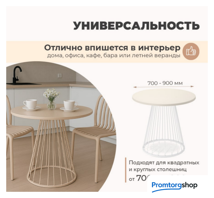 | Тип | для кафе/бара, для дома. Лаконичный дизайн cтола позволяет добавить его в любой дизайн кафе, бара, ресторана, офиса, общественных учреждений, залов ожидания или домашних интерьеров. Вы произведете впечатление на любого, кто посетит Ваше заведение или дом. ДИЗАЙН И ЭСТЕТИКА Столешница из МДФ смотрится аккуратно и привлекательно, поскольку имеет плавный закругленный переход от лицевой поверхности к боковым кромкам. Имеет рельефные и структурные формы, которые визуально неотличимы от натурального дерева. Металлическое круглое подстолье отличается современным и оригинальным дизайном. Элегантная конусообразная форма и чёткие линии придают ему визуальную лёгкость, благодаря чему подстолье гармонично дополнит любой интерьер, от строгого минимализма до стильного лофта. ПРОЧНОСТЬ И ДОЛГОВЕЧНОСТЬ Столешница из МДФ отличается повышенной жесткостью и устойчивостью к окружающим воздействиям.Надёжное металлическое подстолье окрашено порошковой краской, устойчивой к механическим повреждениям и износу. Основание выполнено из трубы 20х20 мм и прутков 10 мм. Для установки столешницы имеются металлические пластины, которые обеспечивают надёжность крепления. Максимальная статическая нагрузка на стол – 50 кг. РЕГУЛИРУЕМЫЕ ПОДПЯТНИКИ На основании предусмотрены подпятники, регулируемые по высоте. Они позволяют использовать стол даже на неровной поверхности. УХОД Легкий и простой уход за изделием. На столешницу запрещено: - ставить горячее без специальных подставок - резать на поверхности без использования доски - использовать на улице под открытым небом, что подвергается прямому воздействию солнечных лучей и осадков - оставлять под прямыми солнечными лучами (открытое окно, балкон, веранда и т.д.) Страна производства: Россия |