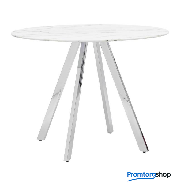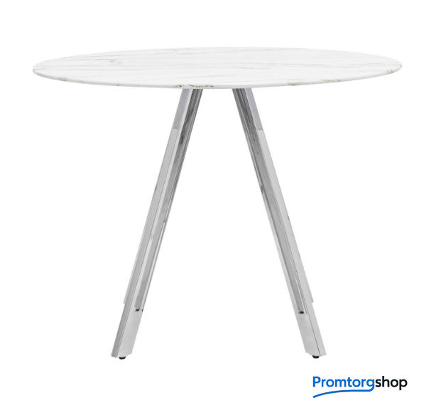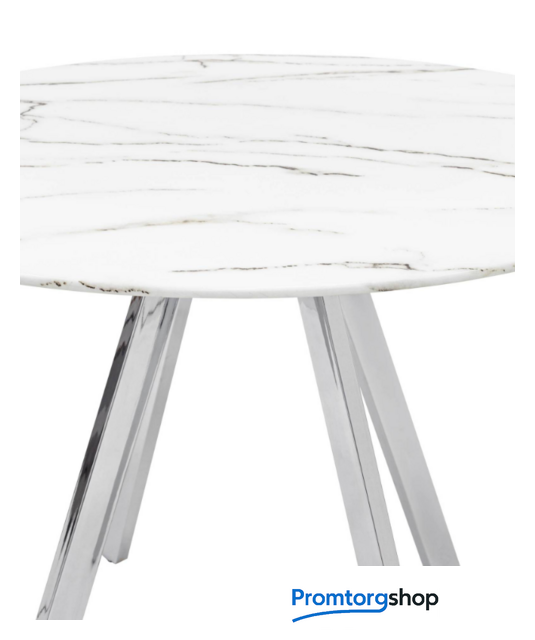 | Тип | обеденный стол для дома, для кафе/бара. Обеденный стол с красивой стеклянной круглой столешницей белого цвета с рисунком под мрамор.Столешница гармонирует с металлическими ножками оригинальной формы. Такое сочетание смотрится эффектно в любом интерьере. Страна производства: Россия |
