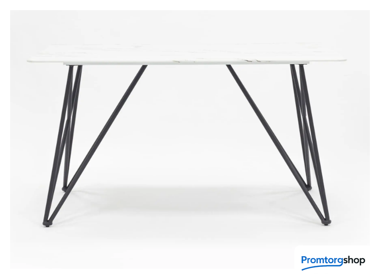 | Тип | Обеденный стол с красивой стеклянной столешницей белого цвета с рисунком под мрамор.Красивая столешница гармонирует с металлическими ножками оригинальной формы. Такое сочетание смотрится эффектно в любом интерьере. |