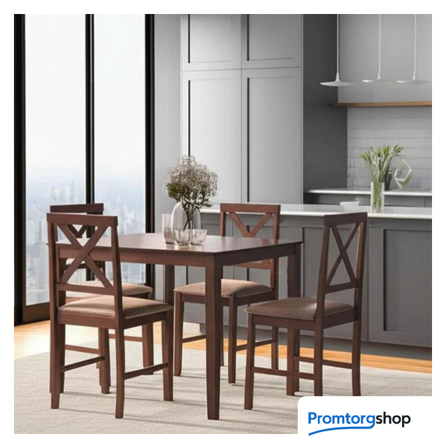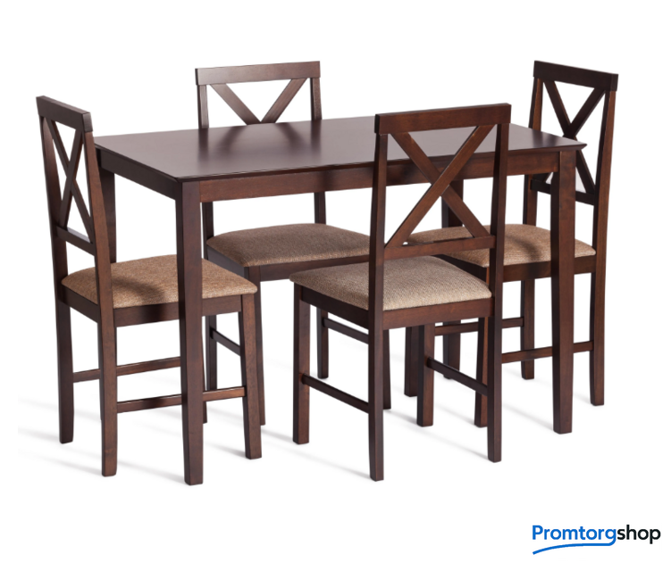 Тип | Стильный обеденный комплект Хадсон из Дельфийской коллекции идеально дополнит интерьер вашей кухни или столовой. Обеденная группа будет отлично смотреться в гостиной, кухни или столовой создавая в комнате атмосферу спокойствия и комфорта. Каркас стола классической прямоугольной формы и основание стульев выполнены из массива гевеи — прочной и долговечной древесины. Столешница изготовлена из МДФ, она не требует специального ухода, не деформируется при изменении температуры и попадания влаги. Мягкая тканевая обивка стула не меняет форму со временем, будет радовать вас своим первоначальным видом долгие годы. Страна производства: Китай |