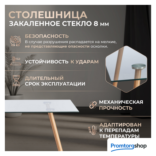 Тип | обеденный стол для кафе/бара, для дома. Стол Sophia из коллекции Modern — это идеальное решение для тех, кто ценит стиль и функциональность. Его лаконичный дизайн и компактные размеры позволят ему гармонично вписаться в любое пространство, будь то уютная кухня, современная столовая, гостиная, дача или даже небольшое кафе. Столешница из закаленного стекла толщиной 8 мм действительно сочетает в себе как эстетику, так и прочность, что делает ее идеальным выбором для современных интерьеров. Закаленное стекло устойчиво к механическим повреждениям и температурным перепадам, что обеспечивает долговечность изделия. Тонкие металлические ножки, окрашенные в черный цвет, добавляют легкости и изящества всему дизайну, создавая эффект воздушности. Конструкция стола проста в сборке, и вы сможете легко установить его самостоятельно, следуя инструкции, которая прилагается к товару. Устойчивость и долговечность делают этот стол прекрасным выбором для повседневного использования. Стол Sophia — это сочетание удобства, качества и эстетики, которое будет радовать вас долгое время. Страна производства: Китай |