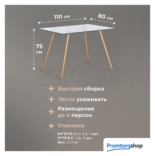 Форма стола | прямоугольная. Максимальная нагрузка 100 кг. Форма поставки в разобранном виде |