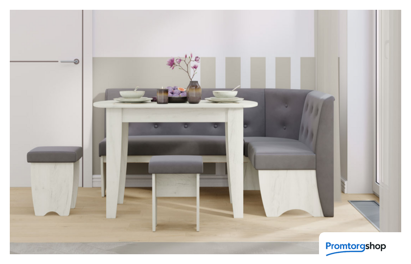 | Состав набора | уголок кухонный мягкий, 2 табурета, стол |
