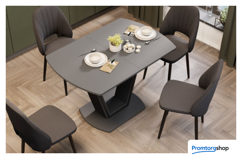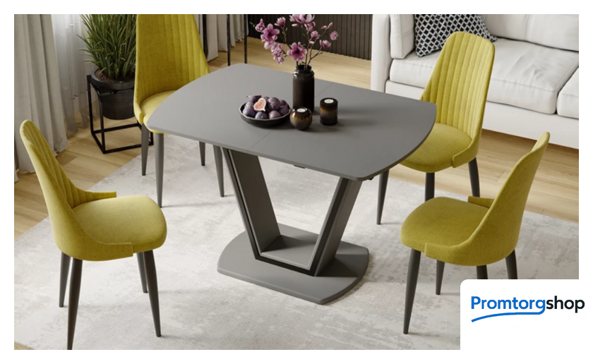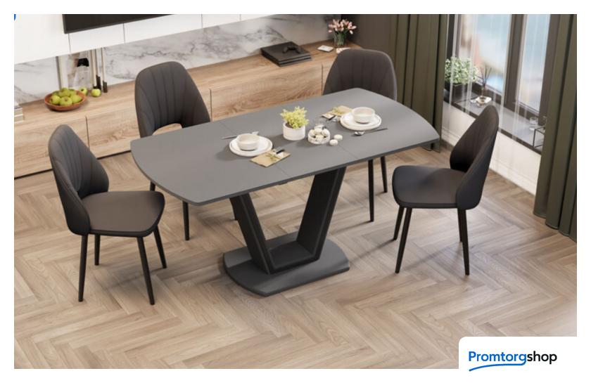 | Тип | обеденный стол для дома. Стол «Дели» выделяется ярким и запоминающимся дизайном, сочетанием материалов и практичностью. Стол имеет надежный ручной синхронный механизм раздвижения со вставкой «бабочка», которая укладывается вручную. Это выручает в моменты прихода гостей, которых хочется разместить свободно и с комфортом. Дополнительная вставка со стеклом в цвет столешницы продолжает элегантный образ изделия, делая его целостным и завершенным. Прочная V-образная металлическая опора с эффектной черной вставкой обеспечивает устойчивость и оптимальный комфорт. Основание опоры гарантирует стабильность и устойчивость замысловатой конструкции. |