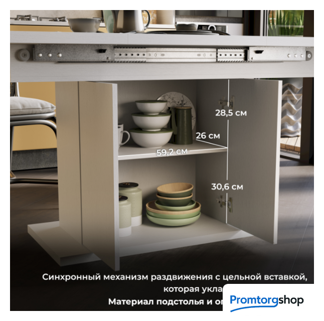 | Раздвижной стол | синхронный механизм раздвижения, цельная вставка, укладывается вручную |