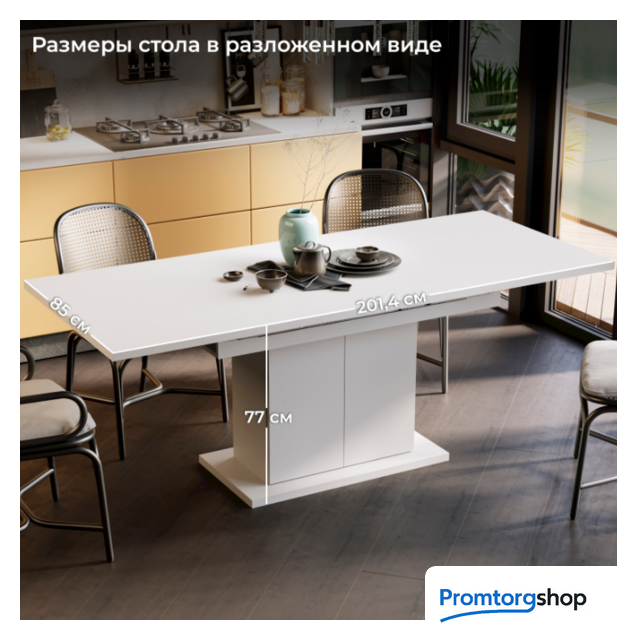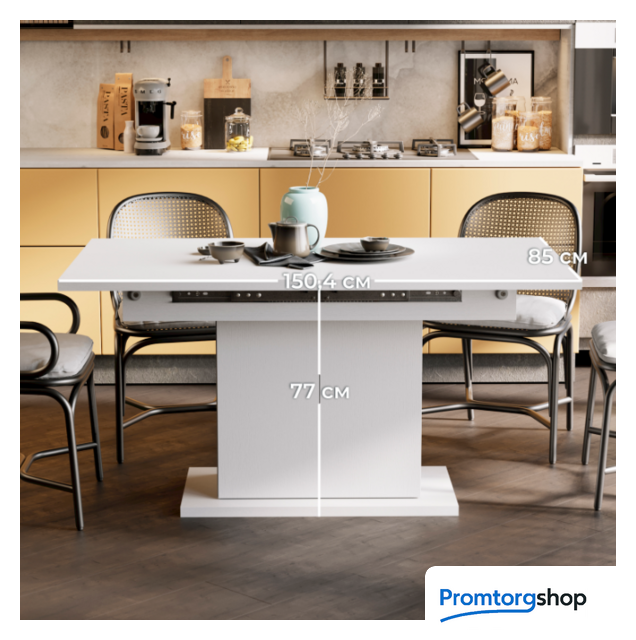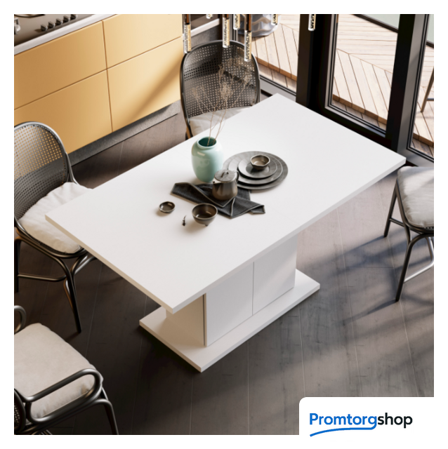 | Тип | обеденный стол для дома. Стол обеденный «Детройт» Тип 1 идеально впишется в Вашу кухню, оформленную в современном стиле. Его линии отличаются четкостью и определенностью, лаконичностью и конкретностью. «Детройт» Тип 1 точно привлечет Ваше внимание, и Вы не сможете пройти мимо этой стильной модели. Материалы. Столешница и вставка изготовлены из ЛДСП 32 мм, которые прослужат Вам долгие годы. Дополнительная вставка в цвет столешницы продолжает элегантный образ изделия, делая его целостным и завершенным. Устойчивое основание изготовлено из ЛДСП 32мм, опора из ЛДСП 16 мм. Современное цветовое оформление. Модель представлена в новых актуальных декорах «Белый/Белый» и «Дуб Крафт золотой/Ателье темное». Белые столы всегда будут беспроигрышным вариантом. Изделие привнесет в кухню чистоту и легкость, добавит ноток аристократичности. Столы с ахроматическим белым цветом легко вписать даже в очень сложную колористическую картинку интерьера. Стол в декоре «Дуб Крафт золотой/Ателье темное» оценят любители стильных и необычных решений. Данное сочетание цветов смотрится особенно оригинально и экстравагантно. Текстуры «Ателье темный» и «Дуб крафт золотой» в контрастном сочетании с «Белым» будут эффектно смотреться в любой современной обстановке за счет сдержанности и оригинальности. Учитывая стиль всех возможных текстур, стол призван создать атмосферу надежности и комфорта. Функциональность. Стол «Детройт» Тип 1 имеет синхронный механизм раздвижения со вставкой, которая укладывается вручную. Это выручает в моменты прихода гостей, которых хочется разместить свободно и с комфортом. Наш стол удивит Вас своей практичностью. Конструкция опоры этой модели предусматривает наличие ниши с полкой для хранения необходимых предметов за дверцами, открывающимися легким нажатием руки. Надежность конструкции. Благодаря основанию и опоре конструкция стола устойчива, надежна и обеспечивает оптимальную эксплуатацию. Страна производства: Россия |