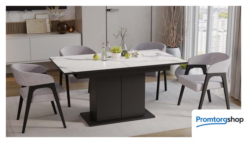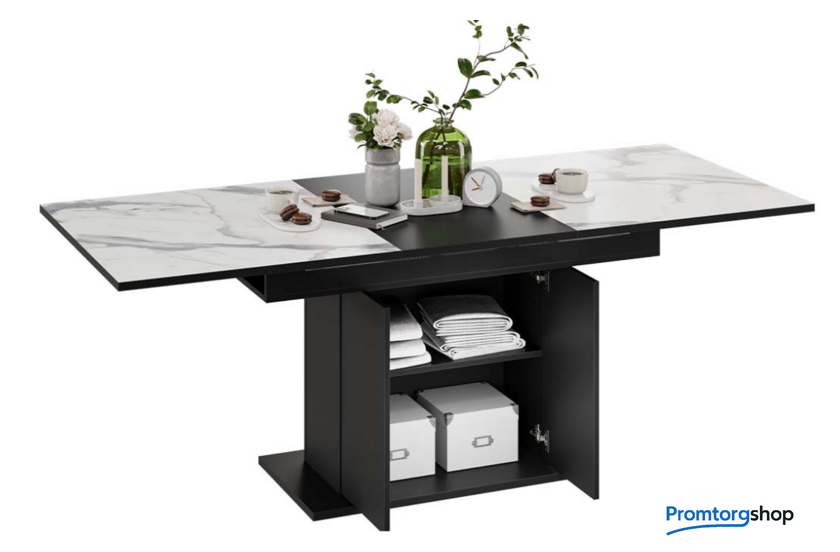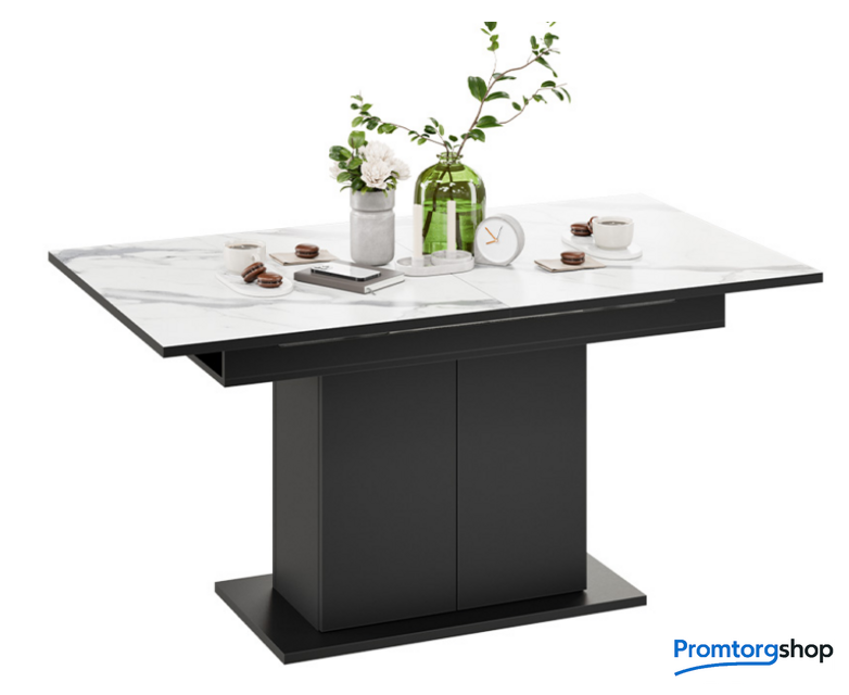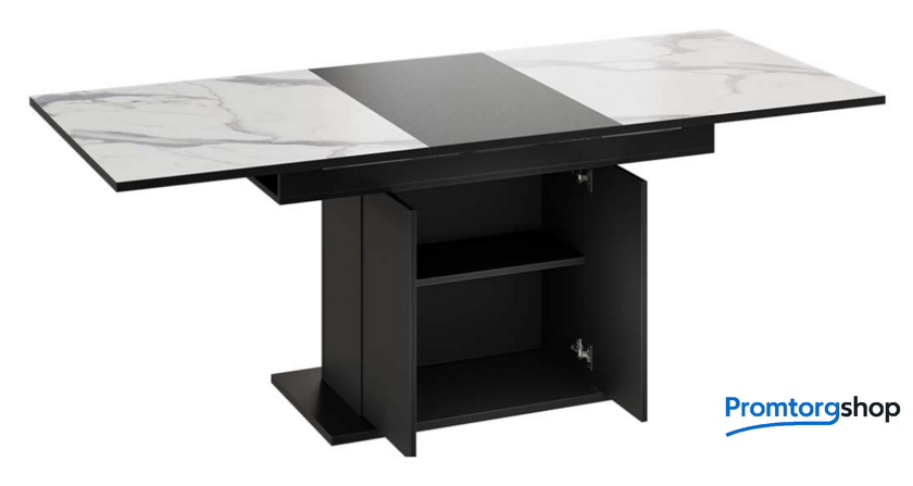 | Тип | обеденный стол для дома. Стол обеденный «Детройт» Тип 3 идеально впишется в Вашу кухню, оформленную в современном стиле. Его линии отличаются четкостью и определенностью, лаконичностью и конкретностью. «Детройт» Тип 3 точно привлечет Ваше внимание, и Вы не сможете пройти мимо этой стильной модели. Материалы. Столешница и вставка изготовлены из ЛДСП 22 мм, которые прослужат Вам долгие годы. Устойчивое основание изготовлено из ЛДСП 22 мм, опора из ЛДСП 16 мм. Современное цветовое оформление. Новинка представлена в актуальном декоре «Черный/Белый мрамор». Контрастное сочетание опоры в цвете «Черный» со столешницей «Белый мрамор» оценят любители стильных и необычных решений в интерьере. Дополнительная вставка в цвет столешницы продолжает элегантный образ изделия, делая его целостным и завершенным. Стол призван создать атмосферу надежности и комфорта. Функциональность. Стол «Детройт» Тип 3 имеет надежный ручной синхронный механизм раздвижения со вставкой, которая укладывается вручную. Это выручает в моменты прихода гостей, которых хочется разместить свободно и с комфортом. Наша новинка удивит Вас своей практичностью. Конструкция опоры этой модели предусматривает наличие ниши с полкой для хранения необходимых предметов за дверцами, открывающимися легким нажатием руки. Надежность конструкции. Благодаря основанию и опоре конструкция стола устойчива, надежна и обеспечивает оптимальную эксплуатацию. |