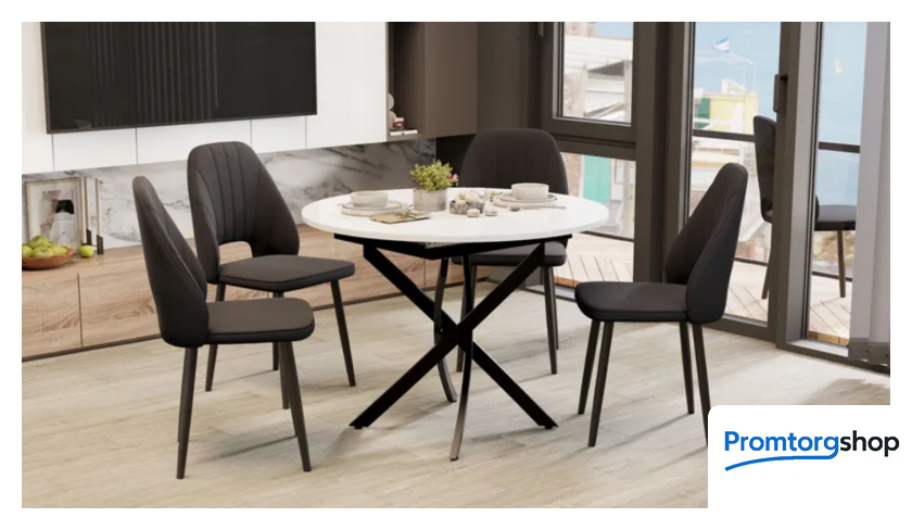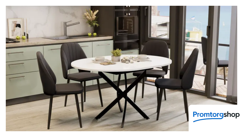 | Тип | обеденный стол для дома. Стол обеденный «Дуглас» Тип 1 привлекает свое внимание элегантной, круглой формой столешницы в сочетании с запоминающимся дизайном металлических опор. В новинке соединены модные тенденции, минимализм и лаконичность - с одной стороны, и практичность вместе с удобством и комфортом – с другой. Материалы и дизайн. Столешница данной модели изготовлена из ЛДСП 16 мм и закаленного стекла 4 мм. Особого внимания заслуживает конструкция основания. «Дуглас» Тип 1 представляет собой основание из четырех оригинально соединенных опор. Каждая из них выполнена с особым вниманием к деталям. Такая конструкция создает ощущение стабильности и гармонии. Опора покрыта порошковой краской «Черный муар», что придает поверхности глубокий, насыщенный оттенок с эффектом муара. |