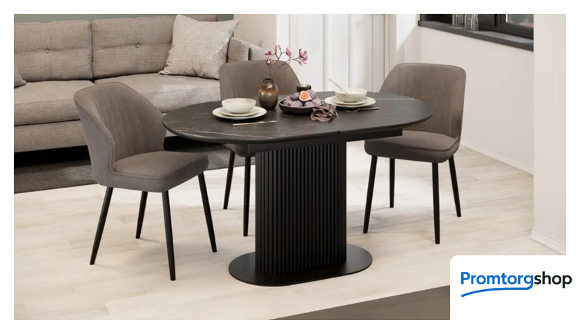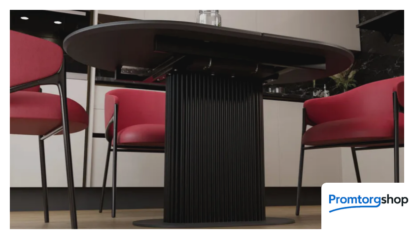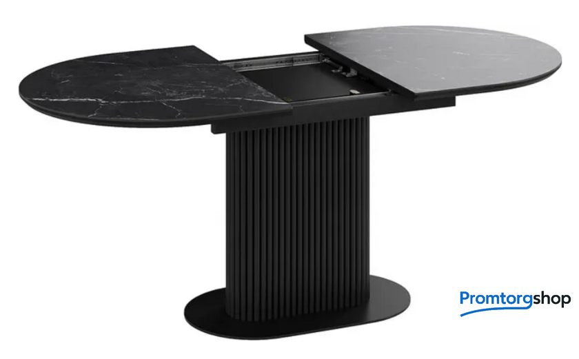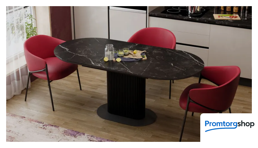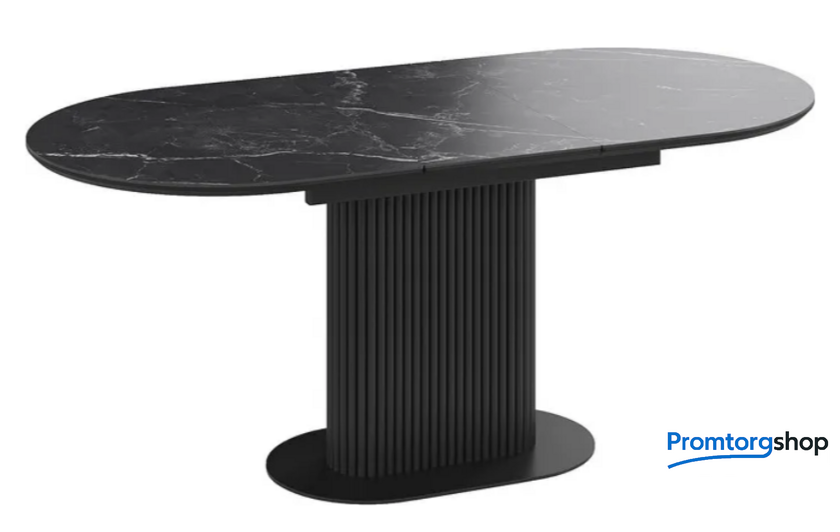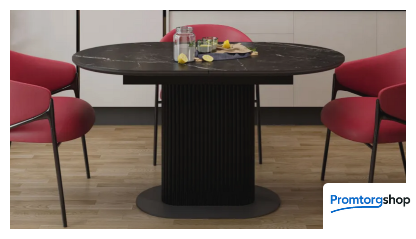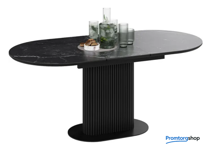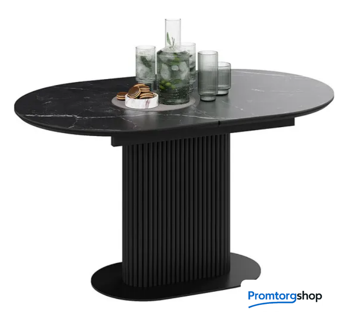 | Тип | обеденный стол для дома. «Эридан» Тип 2 - эксклюзивный обеденный стол, который добавит интерьеру яркий акцент и подчеркнет вашу индивидуальность. Этот стол прекрасно впишется в кухню, создавая насыщенную, стильную и комфортную атмосферу. Стол выглядит элегантно благодаря изящной форме подстолья, которая придает изделию чувство премиальности и прекрасно сочетается с плавными контурами столешницы. Такое сочетание форм создает изысканный и сбалансированный образ, способный стать фокусной точкой любого современного интерьера. Материалы. Раздвижная столешница изготовлена из МДФ 22 мм и керамогранита 6 мм. Опора в цвете «Черный муар» выполнена из металлических трубок, соединенных между собой, и расположена на устойчивом основании из металла. Овальная столешница и графичность основания подчеркивают утонченность этой модели. |