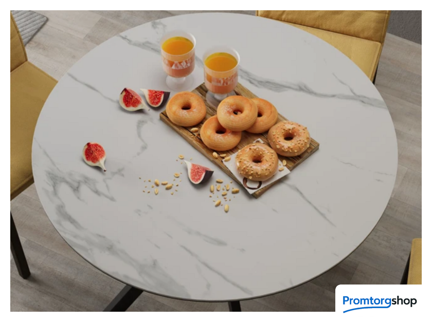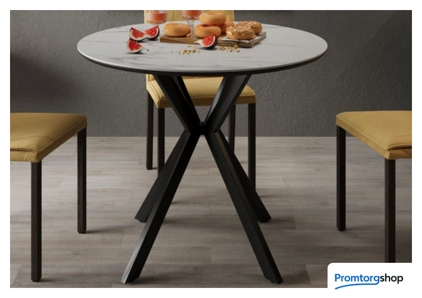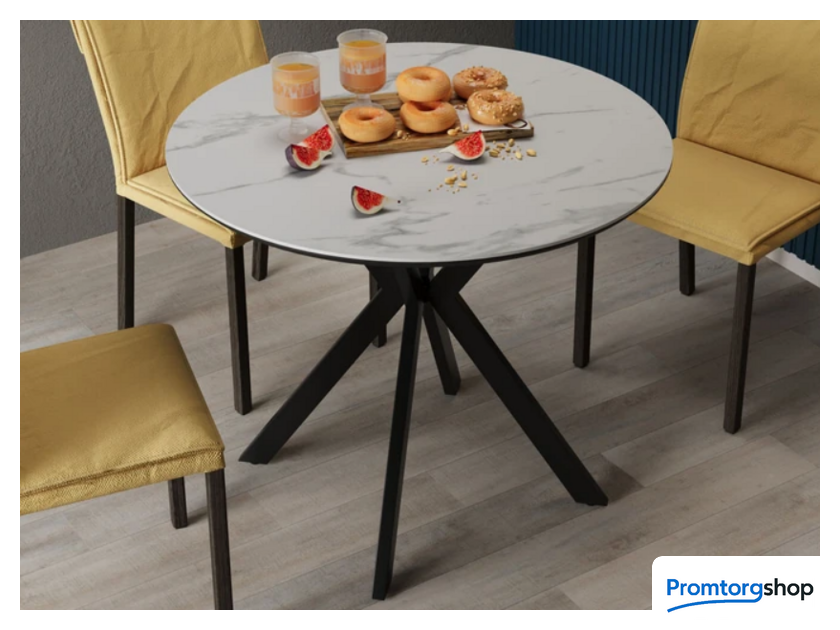 | Тип | обеденный стол для дома. «Эрвин» Тип 1 – элегантный обеденный стол, привлечет внимание оригинальным исполнением. Круглая форма столешницы смотрится изысканно и привлекательно, а необычная форма ножек призвана подчеркнуть современность модели. Компактные размеры позволяют грамотно распределить имеющееся пространство, создавая уютную и комфортную атмосферу. Материалы. Нераздвижная столешница изготовлена из МДФ 16 мм и керамогранита 6 мм. Керамогранит отличается высокой прочностью, долговечностью, надежностью и термостойкостью. Он не требует особого ухода и не подвержен повреждениям при регулярном использовании. Яркая особенность — это опоры из металла, которые смотрятся привлекательно и стильно. Ножки окрашены порошковой краской в цвете «Черный муар». Современное цветовое оформление. Модель представлена в актуальных цветовых исполнениях, которые позволяют приобрести стол исходя из индивидуальных предпочтений каждого потребителя, подобрав мебель на любой вкус и цвет. Надежность конструкции. Металлическое основание гарантирует устойчивость, надежность и долговечность стола, обеспечивая оптимальную эксплуатацию. |