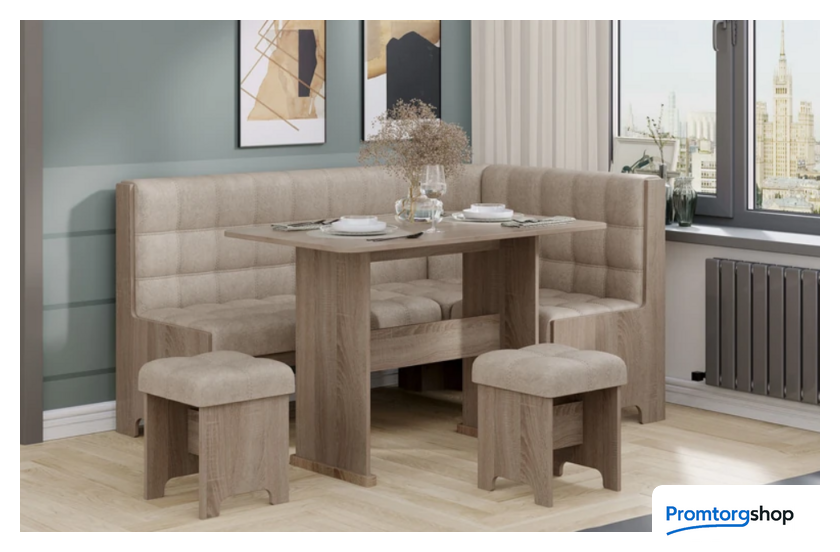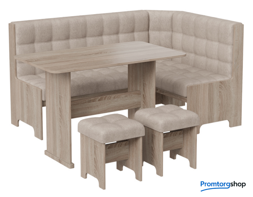 | Состав набора | уголок кухонный мягкий, 2 табурета, стол |