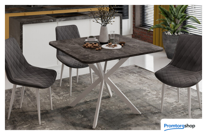 | Тип | обеденный стол для дома. «Лиссабон» Тип 1 — современный обеденный стол, который привлечет свое внимание четкостью линий и форм столешницы, со слегка скругленными углами, в сочетании с уникальным дизайном металлических опор. Модель выглядит аккуратно и эстетично, добавляя обстановке максимальный уют и позволяя создать акцент в определенной части комнаты. Стильный дизайн. Квадратный обеденный стол на перекрещенных ножках смотрится стильно, лаконично и ненавязчиво в любом интерьере. Столешница выполнена из ЛДСП 22 мм. Яркая особенность — оригинальная форма столешницы и опоры из металла, которые смотрятся привлекательно и современно. Ножки окрашены порошковой краской в цвета «Белый муар» и «Черный муар». Современное цветовое оформление. Разнообразие актуальных цветовых исполнений позволяет приобрести модель исходя из индивидуальных предпочтений каждого потребителя, подобрав мебель на любой вкус и цвет. Функциональность. Модель имеет синхронный механизм раздвижения со вставкой «бабочка», которая укладывается вручную. Это выручает в моменты прихода гостей, которых хочется разместить свободно и с комфортом. Дополнительная вставка в цвет столешницы продолжает элегантный образ изделия, делая его целостным и завершенным. Надежность конструкции. Несмотря на сдержанный внешний вид, стол «Лиссабон» Тип 1 обладает рядом достоинств: высокая надежность, благодаря исключительной прочности металла; устойчивость, достигается за счет правильных пропорций перекрещенных металлических опор. |