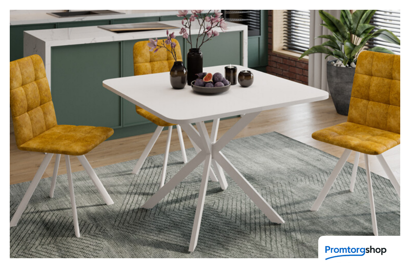 | Тип | обеденный стол для дома. «Лиссабон» Тип 1 — современный обеденный стол, который привлечет свое внимание четкостью линий и форм столешницы, со слегка скругленными углами, в сочетании с уникальным дизайном металлических опор. Модель выглядит аккуратно и эстетично, добавляя обстановке максимальный уют и позволяя создать акцент в определенной части комнаты. Стильный дизайн. Квадратный обеденный стол на перекрещенных ножках смотрится стильно, лаконично и ненавязчиво в любом интерьере. Столешница выполнена из ЛДСП 22 мм. Яркая особенность — оригинальная форма столешницы и опоры из металла, которые смотрятся привлекательно и современно. Ножки окрашены порошковой краской в цвета «Белый муар» и «Черный муар». Современное цветовое оформление. Разнообразие актуальных цветовых исполнений позволяет приобрести модель исходя из индивидуальных предпочтений каждого потребителя, подобрав мебель на любой вкус и цвет. Функциональность. Модель имеет синхронный механизм раздвижения со вставкой «бабочка», которая укладывается вручную. Это выручает в моменты прихода гостей, которых хочется разместить свободно и с комфортом. Дополнительная вставка в цвет столешницы продолжает элегантный образ изделия, делая его целостным и завершенным. Надежность конструкции. Несмотря на сдержанный внешний вид, стол «Лиссабон» Тип 1 обладает рядом достоинств: высокая надежность, благодаря исключительной прочности металла; устойчивость, достигается за счет правильных пропорций перекрещенных металлических опор. |