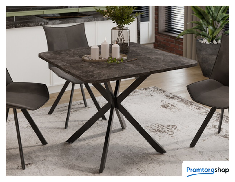 | Тип | обеденный стол для дома. «Лиссабон» Тип 1 — современный обеденный стол, который привлечет свое внимание четкостью линий и форм столешницы, со слегка скругленными углами, в сочетании с уникальным дизайном металлических опор. Модель выглядит аккуратно и эстетично, добавляя обстановке максимальный уют и позволяя создать акцент в определенной части комнаты. Стильный дизайн. Квадратный обеденный стол на перекрещенных ножках смотрится стильно, лаконично и ненавязчиво в любом интерьере. Столешница выполнена из ЛДСП 22 мм. Яркая особенность — оригинальная форма столешницы и опоры из металла, которые смотрятся привлекательно и современно. Ножки окрашены порошковой краской в цвета «Белый муар» и «Черный муар». Современное цветовое оформление. Разнообразие актуальных цветовых исполнений позволяет приобрести модель исходя из индивидуальных предпочтений каждого потребителя, подобрав мебель на любой вкус и цвет. Функциональность. Модель имеет синхронный механизм раздвижения со вставкой «бабочка», которая укладывается вручную. Это выручает в моменты прихода гостей, которых хочется разместить свободно и с комфортом. Дополнительная вставка в цвет столешницы продолжает элегантный образ изделия, делая его целостным и завершенным. Надежность конструкции. Несмотря на сдержанный внешний вид, стол «Лиссабон» Тип 1 обладает рядом достоинств: высокая надежность, благодаря исключительной прочности металла; устойчивость, достигается за счет правильных пропорций перекрещенных металлических опор. |